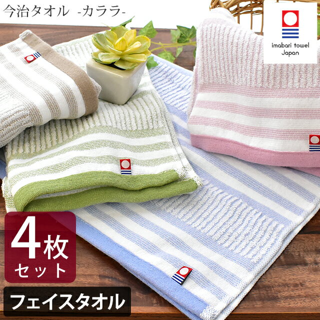【送料無料】今治タオル フェイスタオル 4枚セット 約34×80cm 綿100% 日本製 薄手 今治タオルマーク認定 今治産タオル フェイス タオル プレゼント 贈り物 パイル ブルー グリーン ブラウン パープル おしゃれ コンパクト 旅行 新生活 【あす楽】