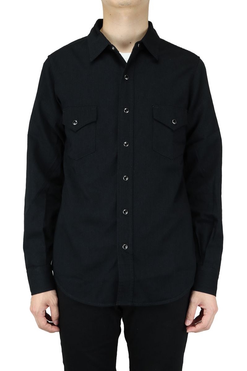 Black Denim Check Western SH / RPT (2109-5006) Minedenim(マインデニム)